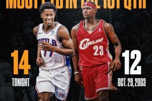 超越詹姆斯!探花埃奇库姆首节14分 新秀NBA历史首秀首节纪录!