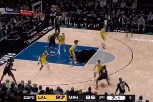 看得准!海兰德强突篮下造海斯犯规 湖人挑战成功改判进攻犯规
