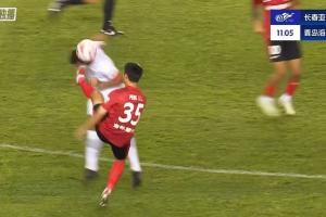 差点一次防守两张红牌!彭欣力抬脚过高踢到对手面部,吃到黄牌
