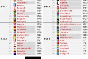其中德国升至一档,克罗地亚跌至二档,澳大利亚升至二档,首进世界杯的佛得角在四档。