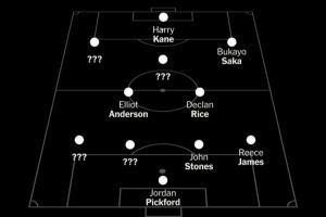 其中,皮克福德将是主力门将,里斯·詹姆斯是主力右后卫,斯通斯确定一个首发中卫位置;中场位置确定了赖斯、埃利奥特·安德森两个首发;前锋位置凯恩、萨卡稳坐首发。