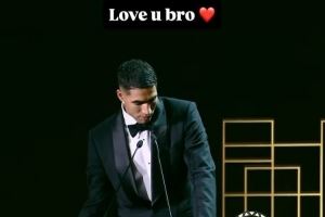 他的好友姆巴佩也通过社媒晒出阿什拉夫的获奖照,并配文:“爱你,兄弟!非洲之王。干得漂亮,我的兄弟...这份荣誉实至名归。”